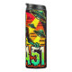 Eine lebendige Abbildung zeigt zwei grün gekleidete Außerirdischen vor einem orangen und gelb gestreiften Hintergrund mit absteigenden UFOs, die helle Balken ausstrahlen. Der prominente, stilisierte Text "AREA 51" schafft ein kühnes und klassisches extraterrestriales Begegnungsthema.