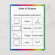 Eine lustige Mathematik-Postkarte, die als schnelle Referenz verwendet werden kann und die die Flächenformeln für Quadrate, Kreise, Rechtecke und Dreiecke vor einem Regenbogenhintergrund hat!