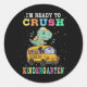 Der lustige Kindergarten-Design mit einem Dinosaurier, der eine Büchertasche mit dem Zitat "Ich bin bereit, den Kindergarten zu zerquetschen" trägt. Perfekt für den ersten Tag des Kindergartens.