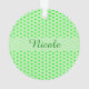 Dieses phantastische Acryl-Ornament zeichnet sich durch ein grafisches Bild eines grünen Pea-Pods mit 3 grünen Erbsen aus. Die größte Erbse hat ein niedliches kleines Gesicht mit Augen und einem Mund. Auf der anderen Seite des Pfods in dunkelgrünem Text steht "Bereit zum Pop". Das Design ist ideal für ein Weihnachtsgeschenk für eine Mutter-zu-Sein.