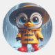Ein fröhlicher Aufkleber mit einem entschlossenen Pinguin, der einen Regenmantel, Hut und Stiefel trägt und bereit ist, den Regentag zu erobern.