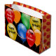 Fügen Sie Ihrem Geschenk eine persönliche Touch hinzu. Haben Sie personalisierten Geburtstagsgeschenktaschen fertig! Farbenfrohe und lustige Ballons auf der Vorder- und Rückseite mit den Botschaften "Happy Birthday" und "Our "Warmest Wunsche" Fügen Sie einfach Ihren Familiennamen hinzu und Sie sind jederzeit für jeden Geburtstag bereit!