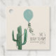 "ready to Pop" Baby Dusche Thema mit Illustration des blauen Ballons von Kakteen mit hellbeige Hintergrund.