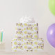 Dieses Geschenkpapier mit Babydusche ist ein niedliches Popcorn-Thema. Der Satz "Bereit zum Pop" wird in einem skurrilen, gerösteten braunen Schriftart gedruckt. Der Buchstabe "O" wird durch einen glücklichen Popcorn-Kernel ersetzt, der ein glückliches Gesicht hat. Oben wird ein Beispielname gedruckt, mit dem Sie Ihren eigenen individuelle Name oder einen anderen Text personalisieren können. Gelbe Popcornkerne werden um den Textteil herum platziert.