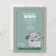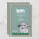 Grillen die hübschen Einladungen, die für Ihren ganzen Sommer passend sind, Ansammlungen und Feiern. Das subtil-farbige karierte wird mit einer Cambridge-blauen Platte bedeckt und einen Grill hat, auf einem Flecken des Grases mit Gänseblümchen stillzustehen. Die Karte ist einfach, mit Ihrer Benennung, Schriftart, Schriftartfarbe und Wahl von sechs Papiersorten besonders anzufertigen.