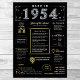 Betreten Sie das Jahr 1954 mit unserem bezaubernden digitalen Geburtstagsposter, das mit historischen Fakten, bemerkenswerten Ereignissen und faszinierenden Geschichten aus der Vergangenheit übersät ist. Dieses Geburtstagsposter mit eleganten Gold- und Silberdetails und einem fett schwarzen Hintergrund mit einzigartigen Symbolen und stilvollem Text verströmt zeitlosen Charme. Egal, ob es sich um Gespräche an Geburtstagsfeiern handelt oder um Gespräche, die als Sake geschätzt werden, es ruft nostalgische Erinnerungen hervor. Unser Geburtstagsposter bietet einen Einblick in das Jahr 1954 und erforscht Aspekte wie Durchschnittseinkommen, populäre Erfindungen, bedeutende Ereignisse, Mode-Trends und Slang der Zeit. Es werden wichtige Momente wie die erste Farb-TV-Sendung, der Babyboom der Nachkriegszeit, der Aufstieg von Rock and Roll und die Entwicklung des Polio-Impfstoffs hervorgehoben. Auch bedeutende Erfindungen wie der Fotokopierer, die Alkalibatterie und die Wasserstoffbombe werden vorgestellt und zeigen den technologischen Fortschritt der Ära. Insgesamt erfasst das Geburtstagsposter das Wesen des Lebens in den 1950er Jahren und umfasst Technologie, Lebenshaltungskosten und kulturelle Trends wie Musik und Mode. Es dient als ein unvergessliches Gesprächsstück bei Geburtstagsfeiern und Jahrestagen und macht, wenn gerahmt, einen durchdachten Sake.