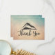 Eine Dankeschön-Karte mit einem ausgesprochen minimalistischen Stil. Entworfen mit einer Abbildung eines Berges mit Sonnenstrahlen, die von hinten ausgehen. Das Wort "danke" unten geschrieben. Hintergrund ist eine Pergamentfarbe mit einem Hauch von Blau.