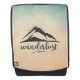 Ein Rucksack mit minimalistischem Outdoorstil. Entworfen mit einer Abbildung eines Berges mit Sonnenstrahlen, die von hinten ausgehen. Das Wort wanderlust unten geschrieben. Hintergrund ist eine Pergamentfarbe mit einem Hauch von Blau. Ein Design, das sich an Outdoor-Arten wie Ruckpacken, Wandern, Bergsteigen und Camping anpasst.
