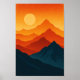 Vintages Rotes und Blaues Poster mit einer Illustration einer Bergwelt Das lebendige und auffallende Bild einer Vintagen alpinen Umgebung in Rot, Orange und Blau wird auf diesem schicken Poster gezeigt.