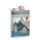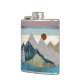 Moderne Landschaft mit einzigartigen Farben und Mustern, die eine Berglandschaft mit gestreiften Skyline zeigen.