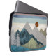 Moderne Landschaft mit einzigartigen Farben und Mustern, die eine Berglandschaft mit gestreiften Skyline zeigen.