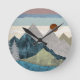 Moderne Landschaft mit einzigartigen Farben und Mustern, die eine Berglandschaft mit gestreiften Skyline zeigen.