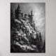 Eine einzigartige Steinburg im Winterschnee in der dunklen Winternacht hoch im Berg. Das ist eine künstlerische KI.