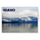Ein digitales Bild von schneebedeckten Bergen am Ufer des Pend Oreille-Sees am Sandpoint in Idaho an einem späten Wintertag. Es erscheint auch das Textlesen "IDAHO".