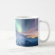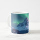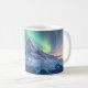 Ein mächtiger, schneebedeckter Berg erhebt sich majestätisch in die knackige Nachtluft, seine schroffen Gipfel glitzern unter einer Decke frischen weißen Schnees. Oben tanzt das Polarlicht über den Himmel in atemberaubenden Wellen von Grün und Blau und beleuchtet die gefrorene Landschaft mit einem magischen Glühen. Die Farben rippeln und schwirren wie bemalte Bänder, wobei schimmernde Reflexe auf den eisigen Hängen unten gegossen werden. Die Szene ist still und beeindruckend inspirierend, eine perfekte Harmonie von Naturkraft und Schönheit - wo die Stille des Berges auf das lebendige Licht des Nordhimmel trifft.