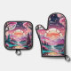 Berge, Fluss, Art Deco, Zuhause Ofenhandschuh & Topflappen-Set