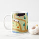 Berge, Flüsse, Wald, Autokomuster. Kaffeetasse
