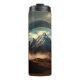 Hübsche KI Kunst mit der Natur. Eine Blase oder ein Globus mit einer schönen Bergszene darin.