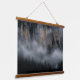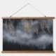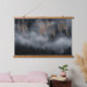 Berge mit Nebel durch Fichtenwald Wandteppich Mit Holzrahmen
