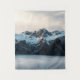 Landschaftsbild von Bergen mit Nebelmeer kurz vor Sonnenuntergang.