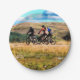 Eine Aquarell von drei Männern Mountainbiking in den walisischen Hügeln.