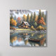 Berghütte mit Rowboat auf einem See Leinwanddruck