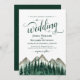 Diese schöne Hochzeitseinladung ist die perfekte Kombination aus rustikalem Charme, klassischer Eleganz und modernem Komfort. Es zeichnet sich durch eine wilde Bergwelt mit schneebedeckten Gipfeln und einem tiefen, waldgrünen Pinienhain aus. Die elegante Schriftzeichen mit Schnörkeln und Wimpern verleihen ihr ein extravagantes und nobles Gefühl, während die Detailsektion und der QR-Code auf der Rückseite es Ihren Gästen leicht machen, die Informationen, die sie brauchen, zu erhalten und online UAWG zu bekommen. Ideal für einen Outdoor- oder Bergurlaub und eine wunderbare Art, Ihre Familie und Freunde zu einem unvergesslichen Tag einzuladen!
