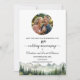 Eine elegante Hochzeitsjubiläumskarte mit Aquarellgebirgen und Kiefernbäumen und einem besonderen Foto, das Sie mit Ihren Details anpassen können.