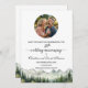 Eine elegante Hochzeitsjubiläumskarte mit Aquarellgebirgen und Kiefernbäumen und einem besonderen Foto, das Sie mit Ihren Details anpassen können.