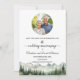 Eine elegante Hochzeitsjubiläumskarte mit Aquarellgebirgen und Kiefernbäumen und einem besonderen Foto, das Sie mit Ihren Details anpassen können.