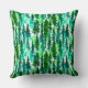Kissen in einem kiefernfarbenen Muster in einem Bergwald, in Schattierungen von mittlerem bis dunklem Kieferngrün auf einem weichen, wasserfarbenen Hintergrund