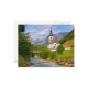 Foto Postkarte einer Landschaft mit einer Kirche neben einem Bergbach im Hintergrund Alpengebirge an einem Sommertag in Ramsau bei Berchtesgaden in Bayern, an der Grenze zu Österreich.