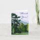 Ein "Danke" Notecard mit einer ruhigen Szene von Bäumen und weit entfernten Bergen, von einem originellen, weichen Pastellbild von Judy Adamson.