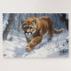 Eine beeindruckende Darstellung eines Berglöwen, der anmutig durch eine schneebedeckte Landschaft schlängelt. Der schlanke Raubtier wird mit intensivem Fokus dargestellt, umgeben von der stillen Schönheit einer Winterwildlandschaft. Dieses Kunstwerk spiegelt den Power und die Eleganz des Berglöwen in seinem natürlichen Lebensraum wider.