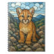 Berglöwe, Buntglas, digitale Kunst Notizblock