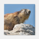 Schließung des Marmotts (Marmota marmota) auf dem Felsen am blauen Himmel, in den französischen Alpen, Savoie-Abteilung in La Plagne