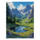 Eingebettet zwischen zerklüfteten Gipfeln spiegelt ein kristallklarer Teich den offenen Himmel wider. Die üppige Vegetation erstreckt sich über die Landschaft, mit Wildblumen übersät, während sich die Kiefernbäume mit der Brise verbiegen. Das Sonnenlicht bricht durch die Berge und wirft ein sanftes Licht über die ruhige Oase. Die Landschaft pulsiert mit leiser Energie - unberührt, groß und vollkommen still.