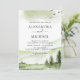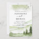 Berg Rustikale Outdoor Forest Greenery Wasserfarbe Frühling Hochzeit Grün Elegant und Moderne Einladungen auf Weißen Hintergrund - beinhaltet schöne und elegante Schrift Typografie mit modernem botanischem Grün für die besondere Hochzeitstagsfeier.