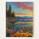 Heller, bunter Bergsee mit Wildblumen, Bergen und friedlichem Wasser. Rätsel, Planer, Notizbücher mit diesem Design in meinen Geschäften.