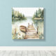 Ein ruhiger Gebirgssee in Aquarelltönen mit ausgedehnten Leinwand-Kunstdrucken mit Bootsanlegestelle, See, Waldbäumen und Bergen im Hintergrund. Ein perfektes Bild der Ruhe. Starke Leinwand für Ihre Wohngestaltung oder Ihr Seehaus. Dies ist eine Version mit 16x16 Zoll. Erhältlich in anderen Größen, und Sie können Ihre Auswahl an Rahmen für Ihre Leinwand Kunst kaufen.