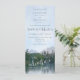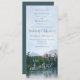 Rustikale Landschaft "Unser Abenteuer beginnt" schlanke Hochzeitseinladungskarte mit einer Ölpastellskizze eines leicht zerklüfteten, aber ruhigen Sees, mit weit entfernten Evergreens, Zedernbäumen und Felsstrukturen, die sich auf der Oberfläche widerspiegeln, und abgelegenen Bergen unter einem blauen Himmel mit klauen Wolken aus der Sicht eines Paddler Kajakfahrens am See oder eines Wanderer am Ufer - gemischte am Ufer - gemischte Schriftart ist ein koordinierendes dunkelblau, wie auch die Einladung zurück - von katz_d_zynes | Suchen Sie Stichwörter aquamarin+abenteuer unter der Registerkarte "Produkte" in meinem Geschäft, um zu sehen, die die Koordinierung von Waren aus Papier und Party