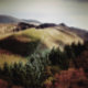 Ein Bergblick auf Wales, der einen Moment Sonnenschein einnimmt, der durch die Wolken bricht.