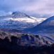 Ein fotografisches Design der schneebedeckten Berggipfel in Wales.
