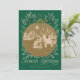Vereinen Sie rustikalen Charme mit elegantem Design in unserer bezaubernden Mountain Ornament Urlaubskarte. Die Vorderseite zeigt einen Goldverzierung mit einem majestätischen Set an einer ruhigen Berglandschaft, die alle unter illustrierten Kiefernbäumen auf einem üppigen grünen Hintergrund hängen. Ihr Familienname wird unter der Grußkalligraphie der Saison künstlich angezeigt und schafft so einen personalisierten Gruß, der das magische Wesen der Wintersaison einfängt. Das naturlich inspirierte Kunstwerk schafft eine ausgeklügelte, aber gemütliche Ästhetik, die sowohl Bergfreunden als auch jenen, die Waldurlaubsthemen schätzen, anspricht, während die umliegenden immergrünen Zweige dem Gesamtbild Bio Wärme verleihen. Der grüne Hintergrund bietet die perfekte Leinwand für die Goldelemente und schafft so eine festliche und zeitlos elegante Karte. Drehen Sie die Karte um, um ein durchdacht gestaltetes Layout zu finden, das neben dem Platz für eine persönliche Nachricht auch das ausgewählte Foto enthält. Dieses zweiseitige Format bietet das perfekte Gleichgewicht zwischen traditionellen illustrierten Ferienkarten und modernen Foto-Grußkarten und ist somit ideal für Familien, die gewollt haben, ihre Liebe der Natur und ein familiäres Foto zu teilen.