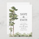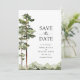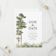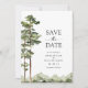 Bergwald Save the Date. Erleben Sie die majestätische Schönheit der Natur mit unseren elegant handbemalten Aquarellkarten, die rettend sind. Jede Karte erfasst wunderbar das Wesen eines ruhigen Waldgebietes, mit üppig grünen Bäumen und atemberaubenden Bergbäumen. Die perfekte Wahl für Paare, die einen unvergesslichen und einzigartigen Tag verbringen möchten.
