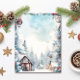 Bergwald Snowy Log Kabinen Weihnachten Briefbogen