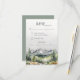 Dieses wunderschöne rustikale Abenteuer beginnt mit der RSVP-Karte, die mit Aquarellen bemalte Berge, Waldlandschaft und herrlicher Salbei-grüner Rückenlehne für Herbst, Winter oder Hochzeit in Urlaubsort auszeichnet. Personalisieren Sie es mit den Details Ihres Hochzeitstages.