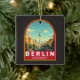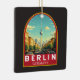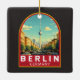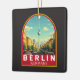 Berlin Retrovektor-Reisedesign. Die Stadt ist bekannt für ihre Kunstszene und moderne Sehenswürdigkeiten wie die vergoldete Berliner Philharmonie, die unter einem Swoop-Dach liegt.