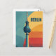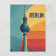 Dieses Vintage Plakat zeigt die ikonische Silhouette des Berliner Fernsehturms, stehend hoch und mit minimalistischem Retro-Hintergrund. Der kühne Kontrast und die verblassten Töne erinnern an den Geist des Designs der Mitte des Jahrhunderts, der die modernistische Eleganz der Berliner Skyline einfängt. Eine bemerkenswerte Hommage an eine der bekanntesten Sehenswürdigkeiten Deutschlands - perfekt für Liebhaber der urbanen Kunst und Stadtarchitektur.