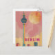 Dieses Vintage Plakat zeigt die ikonische Silhouette des Berliner Fernsehturms, stehend hoch und mit minimalistischem Retro-Hintergrund. Der kühne Kontrast und die verblassten Töne erinnern an den Geist des Designs der Mitte des Jahrhunderts, der die modernistische Eleganz der Berliner Skyline einfängt. Eine bemerkenswerte Hommage an eine der bekanntesten Sehenswürdigkeiten Deutschlands - perfekt für Liebhaber der urbanen Kunst und Stadtarchitektur.